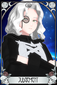 Name: Saiban Sabaki Epithet: Judgement An intimidating figure who keeps to himself most of the time. Believes himself autocratic and unbiased, yet tends to formulate his decisions and opinions about other people based on the general public's impression of them. Maker May 2023, Class Arcana Set #23